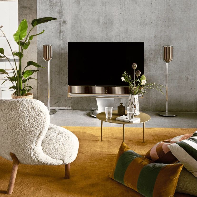 Every room is unique. That’s why Beolab 8 carefully maps its environment with a dedicated microphone – to deliver crystal clear quality and musical fidelity no matter the size or setup of your space. A neodymium motor drives the sound home. So you can enjoy a soundscape adapted to your surroundings and your immersion.