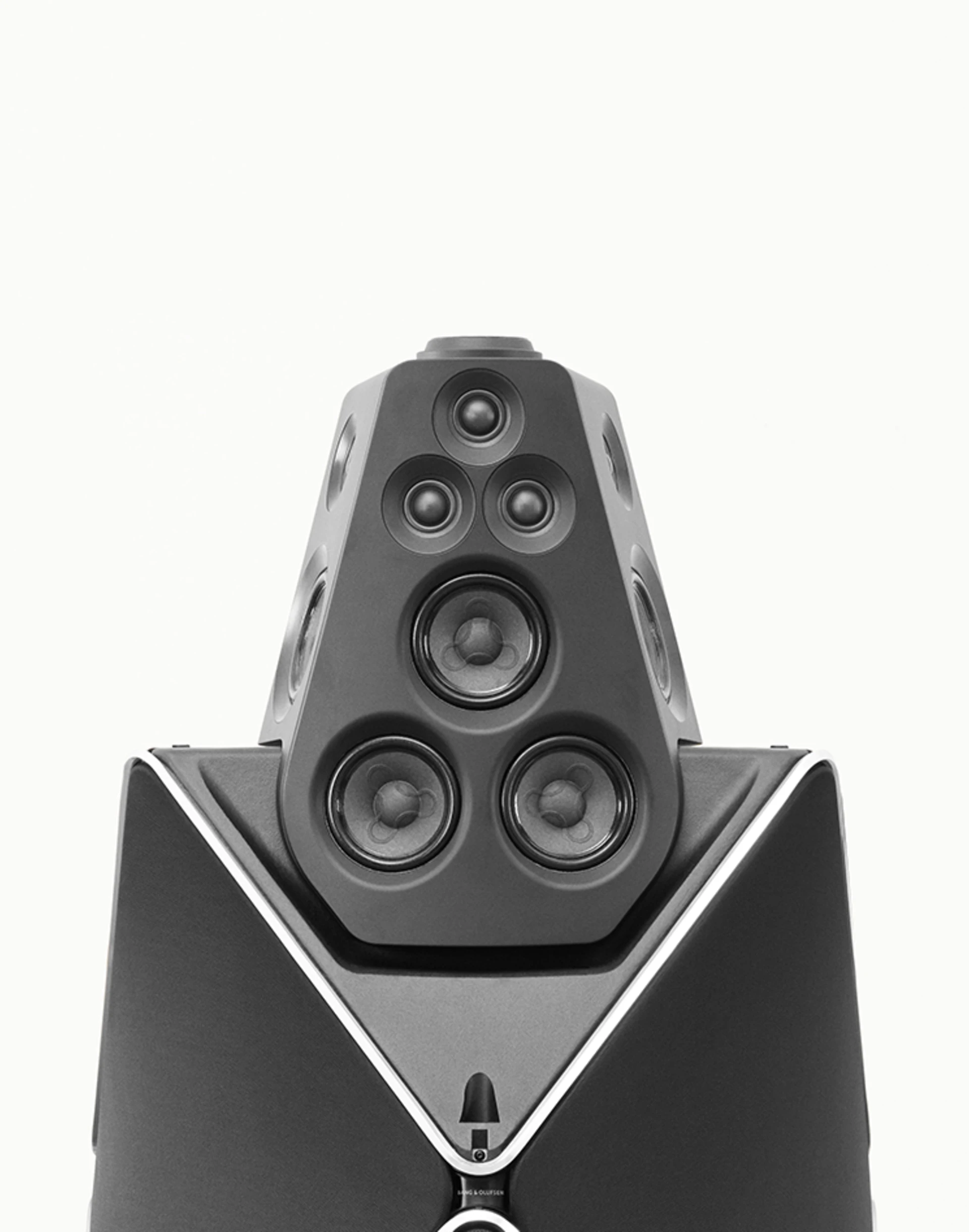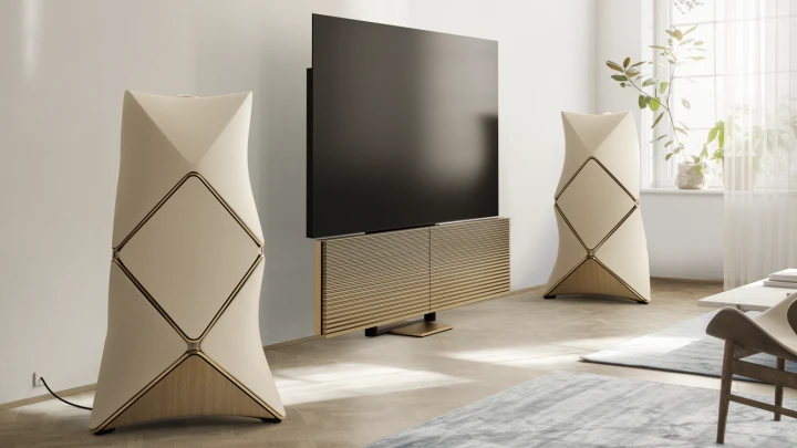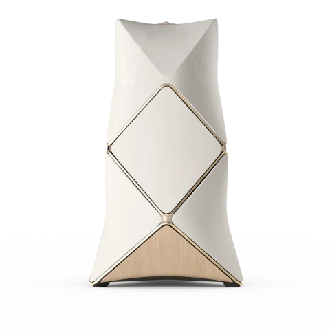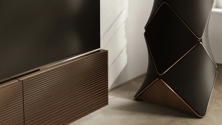Shaped to optimise performance, Beolab 90 has been carefully engineered for the best possible sound every time. The bold design is based on a complex aluminium cabinet with a rock-solid structure, yet its curved wooden base and fabric sails create an aura of lightness.