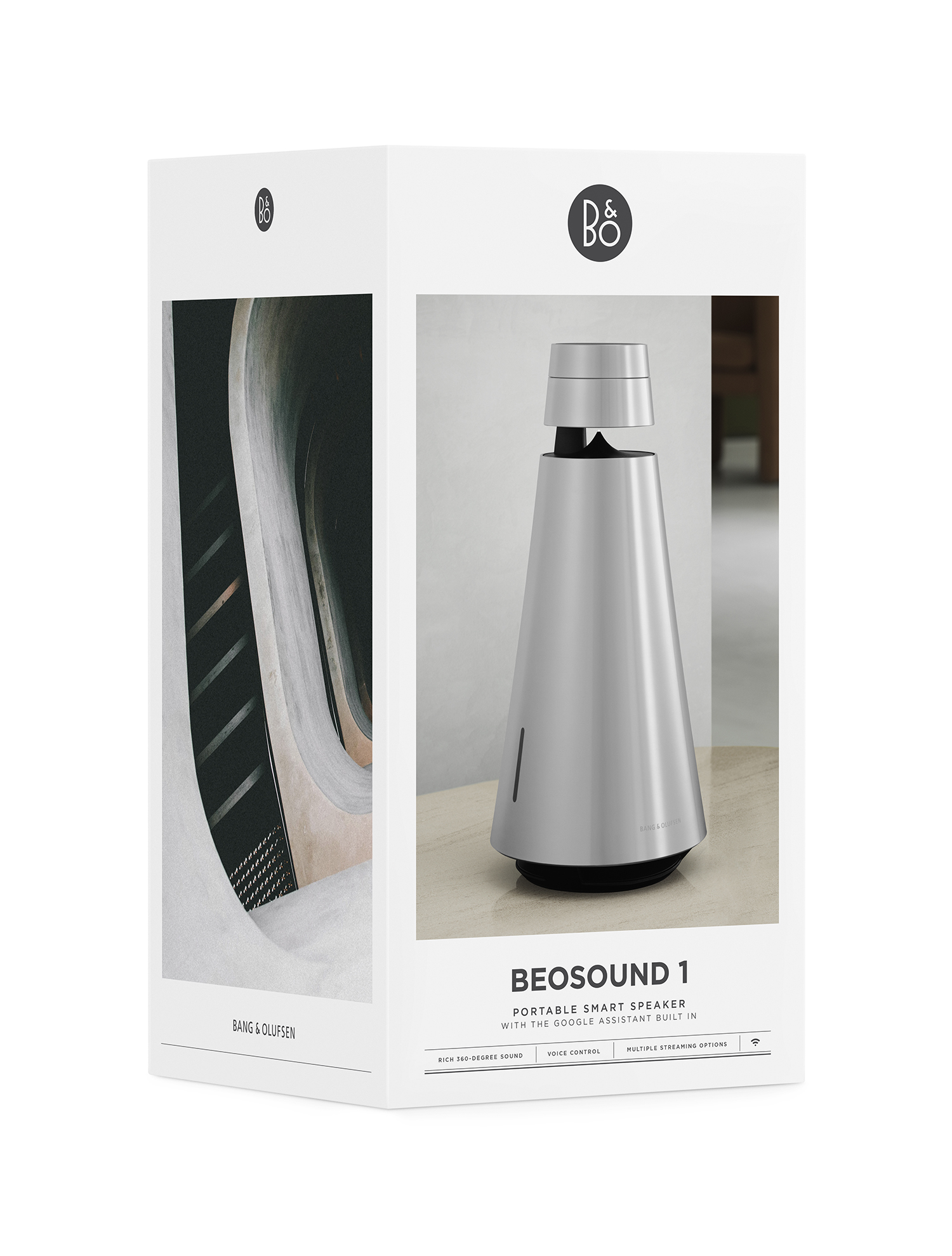 Beosound 2 offers excellent sound quality with incomparable power. Integrating our Acoustic Lens Technology into the cone speaker body creates a 360-degree sound experience that fills the entire room, regardless of the speaker’s location.