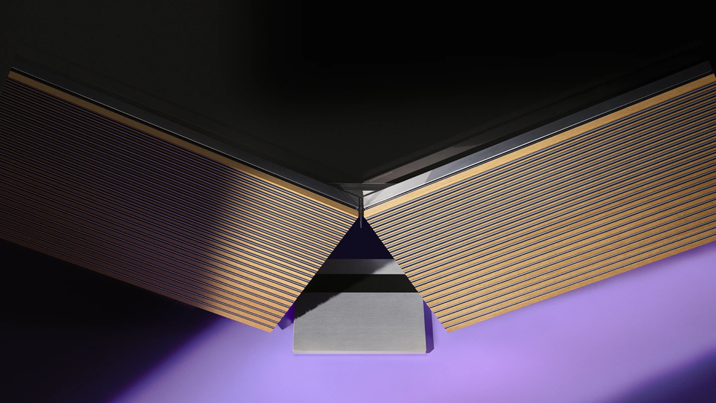 Absolute clarity of speech. Full-bodied, detailed stereo. With this three-channel powerhouse, the sound of cinema has never felt closer. Want to experience even deeper immersion? With the built-in intelligent surround sound processer, Harmony works seamlessly with Beolab speakers to boost the bass, amplify the accuracy and totally submerge you in sound.